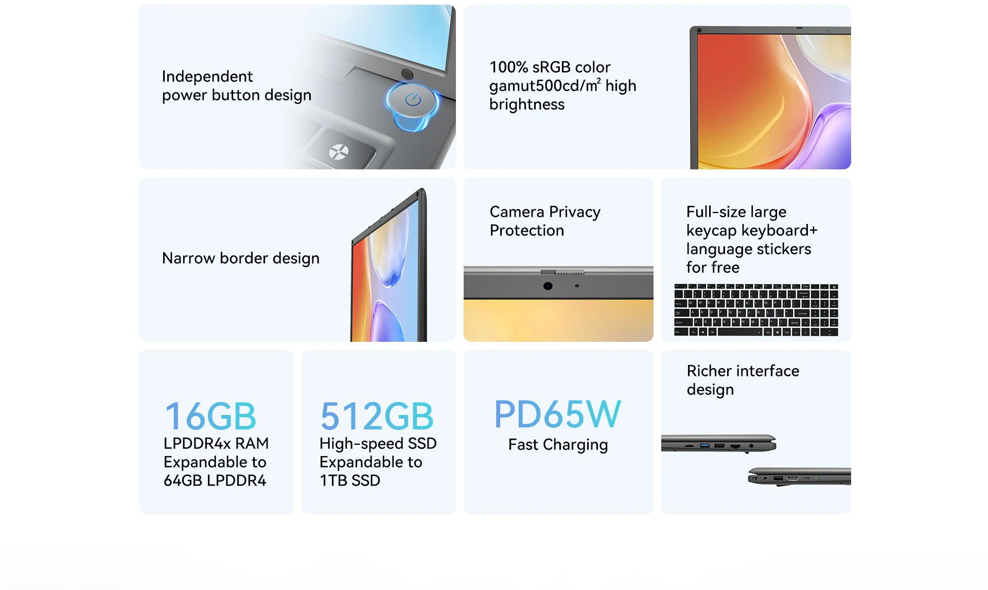 8GB LPDDR4 memory,128GB high-speed SSD,run faster