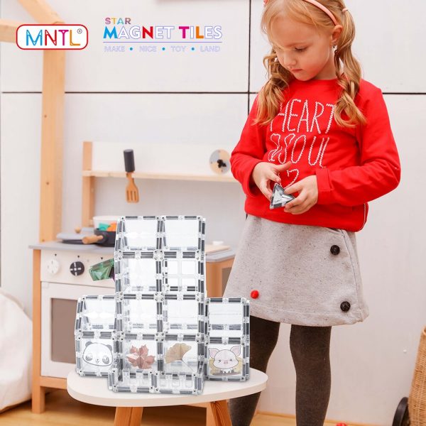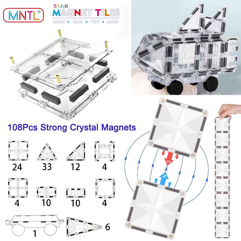 MNTL 108Pcs Magnetic Transparent Tiles Toys Building Blocks STEM Educational Science Learning Magnet Stacking Bricks Car Vehicle