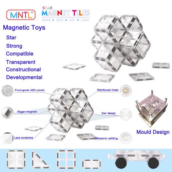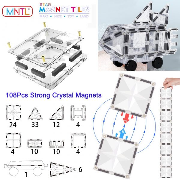 • Pieces: 108pcs transparent magnetic toys crystal clear blocks tile toys